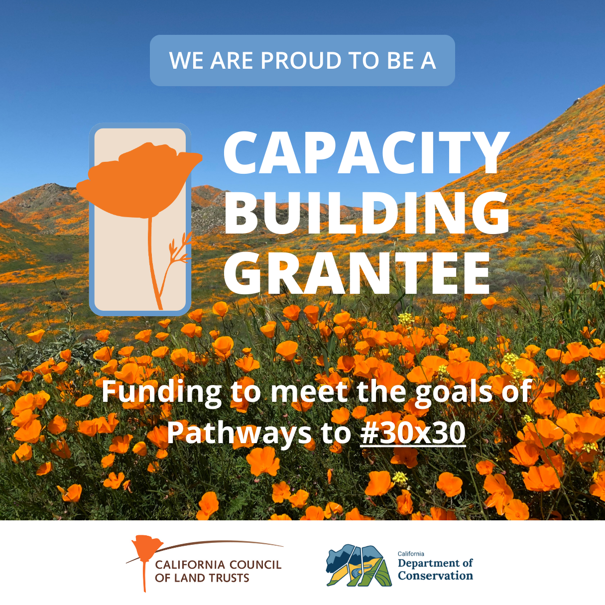 The California Council of Land Trusts (CCLT) has awarded $1M in funding to 11 land trusts as part of the Capacity Building Grant Program to support land trusts and their partners in advancing the goals of 30x30 and the Natural and Working Lands Climate Smart Strategy (NWLCSS), and in building and sustaining partnerships.