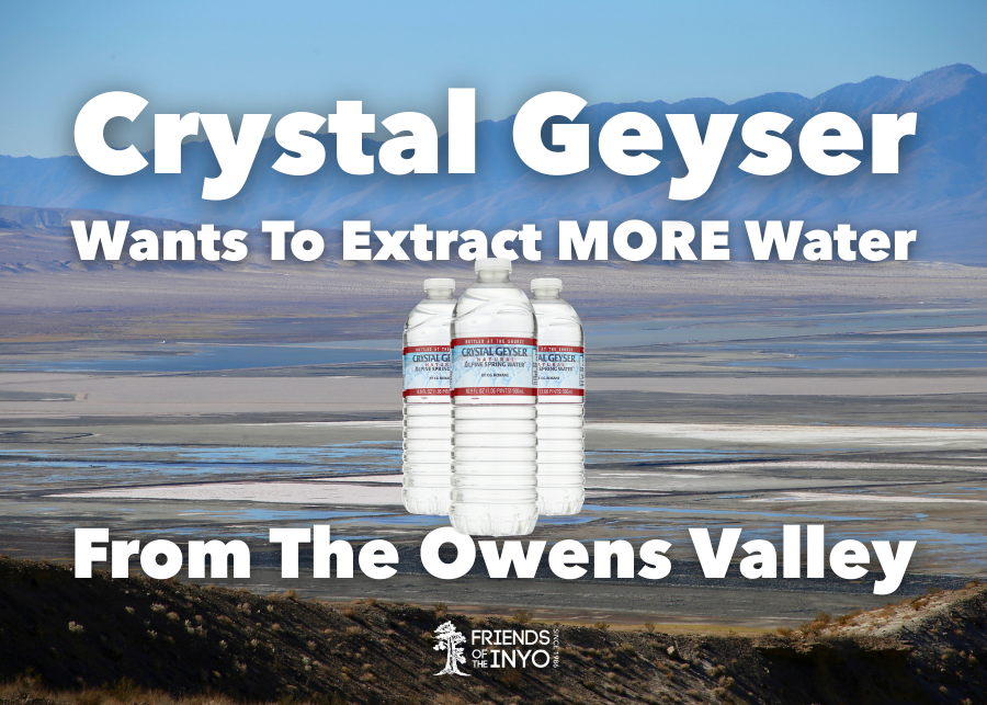 Crystal Geyser is planning to build a new water bottling facility near Olancha that would involve drilling a production well to pump more groundwater from the Owens Valley. The well would produce up to 410 acre-feet per year, with a maximum of 510,000 gallons A DAY. To put that into perspective, they're anticipating that a total of 38 trucks per day would transport the packaged bottled water product off-site to the distribution centers.