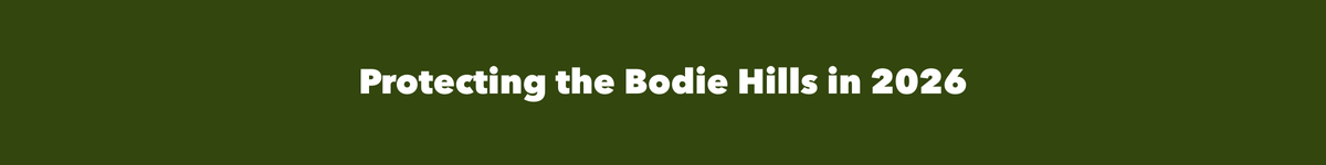 In 2026, Friends of the Inyo will continue to work towards the protection of, and advocacy for, the lands and water in the Bodie Hills. This includes serving in the Bodie Hills Conservation Partnership and providing support to the 4 Tribes Alliance, consisting of the Bridgeport Indian Colony, Mono Lake Kootzaduka’a, Yerington Paiute Tribe, and Walker River Paiute Tribe, in their efforts to protect their ancestral homelands with historical and cultural designations. We cannot protect these lands without working in collaboration and community: the Bodie Hills remain under serious threat from exploratory drilling and gold mining. In 2026, we will not be able to protect this naturally and culturally rich area from widespread destruction without the help of engaged community members who say “no” to the “drill, baby, drill” rhetoric.
