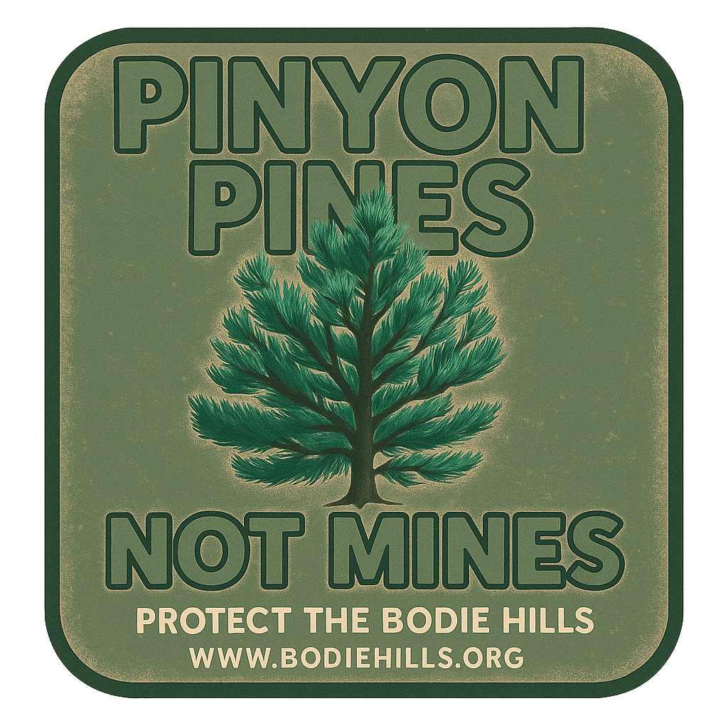 Sign up for the newsletter to get ready for action alerts and events to stand up for these lands as we face SIX different mining projects, deforestation of culturally and ecologically important pinyon woodlands, and the degradation of habitat and cultural history. Get your Bodie Hills stickers, slap them on your car, water bottle, laptop, and get ready to speak out.