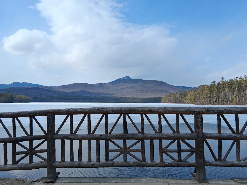 The ice is melting on Chocorua Lake. April 14 was the most-selected day in our annual Ice Out contest—we'll see! The lake appears mostly covered still on the Chocorua Lake live cam view, but Little Lake is ice-free. Jack the dog and his people are our judges once again, but they don't need to check every day quite yet. Here's how things looked on March 29. | Donna Thompson
