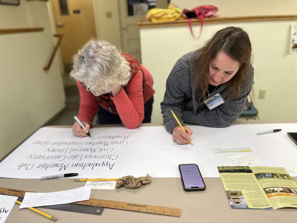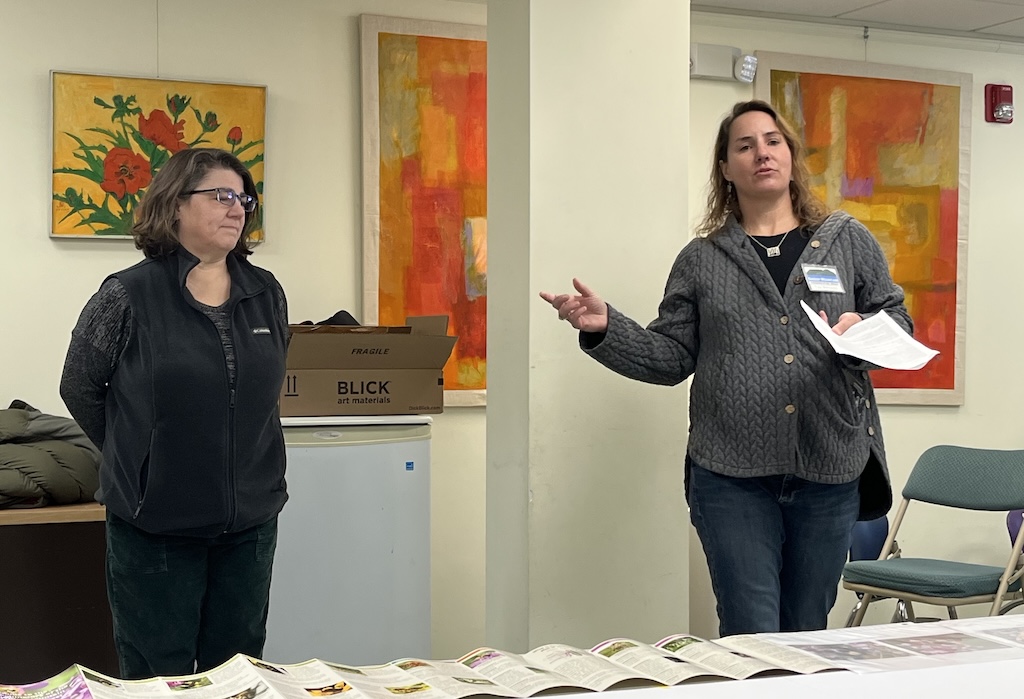 A big thank you to Tara Schroeder from Green Mountain Conservation Group (right) for presenting on native pollinators, pollinator and plant interactions, and how we can support the pollinators in our midst. Thank you also to Georgia Murray (left) from Appalachian Mountain Club for sharing about pollinator eDNA projects and more in the White Mountains. | Juno Lamb